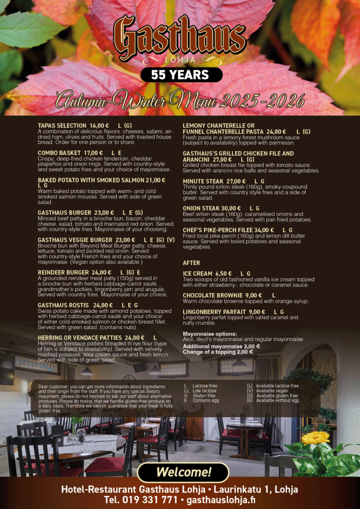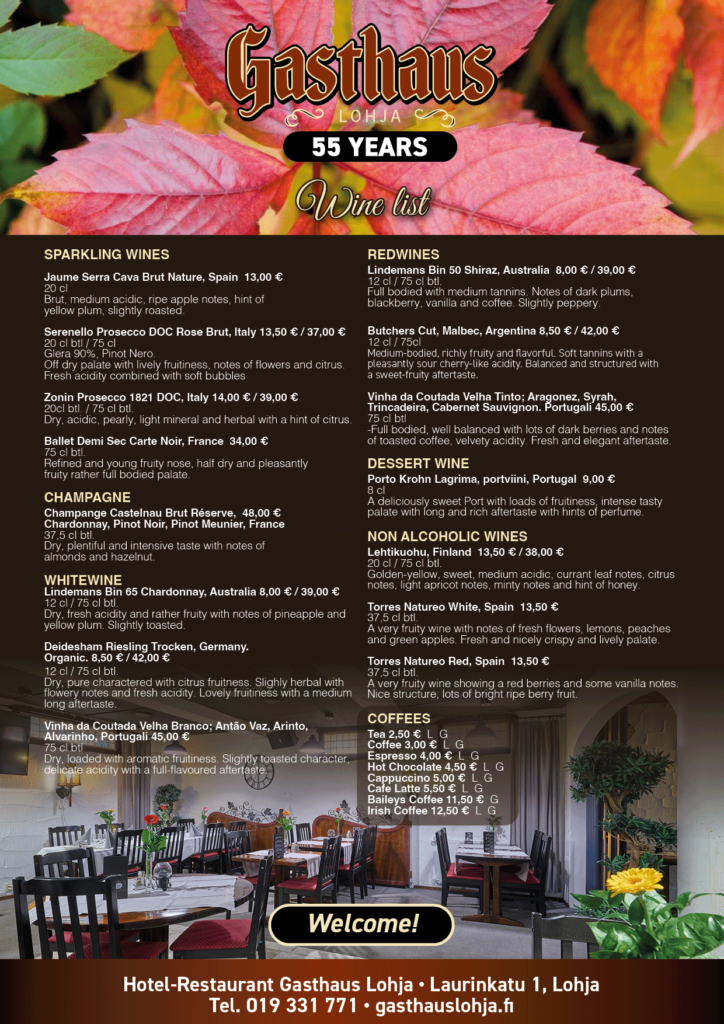 Gasthaus Lohja´s restaurant is cozy and atmospheric cellar-restaurant with a licensed bar.